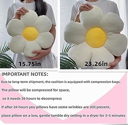 Cotton,fleece Three-dimensional flower shape design: The daisy throw pillow, each petal is filled with fullness, supporting force, comfortable sitting, skin-friendly fabric, delicate and soft of super soft plush fabric and crystal fleece and filled with PP cotton for strength and durability, no matter how much you squeeze or pull it, it will keep its shape. Multifunctional: Plush flower-shaped pillow are suitable for bedrooms, living room sofas, desks, office and anywhere else. When you are resting or reading, you can roll it up or fold it and feel the pleasant soft feeling the flower pillows decorative throw pillows gives to your arms and back. Easy to clean: These cute aesthetic decorative pillows wipe stains with a damp cloth or machine wash, gently circulate cold water, then air dry. Floor cushions are useful if you're hosting a movie night or party for your guests and the couch doesn't have enough room. Service: If you have any dissatisfaction or questions about our flower pillow cushion, please contact us immediately via buyer's message. We will provide you with a satisfactory solution within 24 ho