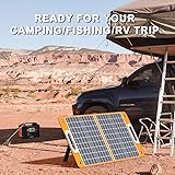 [Solar Power Your Life] - Solar Generator Bundle includes a Portable Solar Panel 60W and a Portable Power Station 200W/40800mAh [Power Your Expectations] - Featuring 2*110 AC output (200W), 2 DC output(120W), 2 QC 3.0 quick charge USB port and 1 USB ports (2.4A auto). Power your smartphone, tablet, laptop, camera, light, drones, fans, in-car appliances and more at anytime. [ 3 Outputs 60W Solar Panel ] - Featured with 1*18V DC output, 1* USB-C(45W) and 1* USB-A(18W) output port.Charging multiple small devices at the same time, prepare for your smartphones and tablets, digital cameras, etc. Ideally suited for outdoor life and even unexpected power outages. [Three Recharging Modes] - You could recharge the power station with an AC adapator when at home, through the car outlet during a road trip or simply use a Flashfish 60W solar panel when camping. [High Conversion Efficiency] - Constructed of high-efficiency solar arrays, convert up to 21.5-23.5% of solar power into free energy.