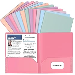 - 12 Pack Colored File Folders with Pockets and Business Card Holder, Pastel Decorative Pocket Folders for Documents, Cute Plastic Folders for Filing Cabinet, School, Office, Resume Portfolio