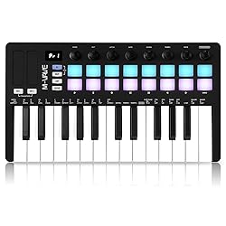 M-VAVE 25 Key USB MIDI Keyboard Controller With 16 Backlit Drum Pads, Bluetooth Semi Weighted Professional dynamic keybed 8 Knobs and Music Production,Software Included (16 Drum Black)
