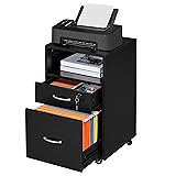 Yaheetech File Cabinet, Under Desk Vertical Cabinet with 2 Drawers and Open Compartment, Printer Stand with Lockable Wheels for A4 Letter Size Hangable File Folders for Home Office(Black)