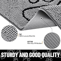 - Smiry Dog Door Mat for Muddy Paws, Absorbent Dirt Trapper Non Slip Quick Dry Washable Chenille Mat for Mud Dogs, Entry Rug for Indoor and Outdoor Features: [Soft and Comfortable Chenille] Smiry luxury chenille door mat soft and comfortable to touch, offers exceptional comfort and support for your feet. [Absorbent and Dirt Trapper] Smiry indoor door mat is designed to effectively catch dirt and quickly absorb moisture. [Non-Slip Textured Rubber Base] Our mud mat for dog paws comes with a sturdy, textured rubber backing that keeps it from moving and sliding. Choice for sizes: 48 x 30 inch/ 30 x 20 inch/ 36 x 24/ 24 x 16 inch/ 40 x 32 inch/ 47 x 32 inch/ 59 x 35 inch/ 47 x 24 inch/ 70 x 24 inch/ 59 x 24 inch / 71 x 46 inch / 21 x 34 inch / 24 x 44 inch / 32 x 44 inch / 32 x 54 inch / 32 x 59 inch / 59 x 46 inch Choice for colors: Grey/ Beige/ Black/ Brown/ Dark Grey/ Navy Blue/ Sage Green / Sky Blue / Burgundy / Atlantic Blue / Sky Blue / Green / Camel / Red / Yellow / Royal Blue / Coral / Hot Pink / Airy Blue / Coffee / Cornflower Blue / Deep Plum Will the door open unobstructed if the mat is placed in the doorway? The sturdy materials doormat has a low pile design to ensure that it does not get caught in the door. It adds a tasteful touch to various areas such as entryways, front doors, houses, lobbies, offices, patios, garages, businesses, barns, living spaces, driveways, and other public areas with its sophisticated colors.