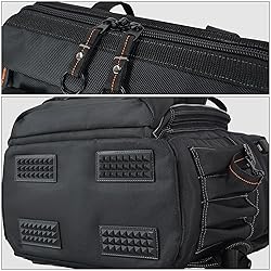 55-Pockets: The backpack for tools with 55 pockets to keep all tools organized and easily accessible. A compact tool bookbag for jobsite of multiple works Open-Top: The rugged IronRod opening of the tools backpack helps you look down to access all your tools at once quickly. An excellent jobsite backpack Padded-Base: The large pad feet of the technician backpack reduce wear and provide a flat surface to stand the tools bag back upright—a superb technician tool bag. Comfortable-Carrying: Well-padded back and shoulder straps of maintenance backpack with a buckled chest strap to adjust for a perfect fit. Good choice as backpacks for tools. Heavy-Duty: The backpack tool bags for men are constructed with durable, water-resistant 1680d ballistic weave material and Gun-Metal hardware—a built-to-last backpack for tools.