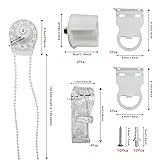 【Shade Hardware Components】2 x white metal brackets with plastic covers, 2 x Brackets, 6 x Expansion Screws, 6 x Screws, 4 x Child Safty P-Clips and 2 x Transparent handle 【Applicable Roller Shades】The Fitting kit is for standard roller shades with a 1.1"(28mm) diameter tube. 【High Quality】These roller curtain fittings repalcement kit are made of high quality plastic, lightweight but durable enough to hold most of standard roller blinds. 【Chain Length】About 1.5 meter hanging length chain with children safety deviceand chain connector.Comes with 2 pack p clips to fix the control cord of blinds. Please install it on the wall at least 1.5 meter height from the ground for the safety of your children. 【Easy to Install】It is easy and flexible to install, the bracket can be installed on top, side or front accoding to your needs.