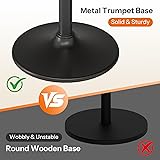 Thoughtful Design: This high bar table measures 21.7"D x 21.7"W x 35"H,It is ergonomically designed to give you body support while relaxing your shoulders and back, providing you with the most comfortable and healthy dining and gathering experience anytime, anywhere Solid & Sturdy Metal Base: Crafted from a high-grade engineered wood panel paired with a heavy-duty steel trumpet base for exceptional stability and durability. Smooth, rounded edges and non-slip floor protectors ensure safe use and prevent scratches on your floors Multi-Scene Use: This high pub table, with its simple and generous design, can be easily adapted to various scenarios, providing space and convenience in the bar, cafe, restaurant, etc., and bringing a clean and refreshing visual effect inadvertently Understated and Minimalist: Smooth lines, hard design and simple geometric modeling outline this exquisite pub table. Calm temperament black color, not flashy, is the mood and interest of minimalist art, showing your unique lifestyle and home taste Easy to Install and Clean: With a simple structure, detailed assembly instructions and labeled parts, you can easily create a simple and stylish bar table for your space. Smooth top makes cleaning a breeze with a gentle wipe using a cloth
