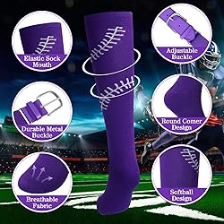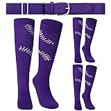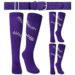 Purple and Enough Quantity: there are 3 pairs of softball socks, and 1 piece of youth softball belt, which are in the same color, easy to match with your various clothing styles, the quantity of the socks is enough for you to wear, replace or share with your friends Suitable Size: small size fits US youth shoe size 12-5; Medium size for youth (over 12 years old) fits US womens shoe size 5-10 mens shoe size 5-9; Large size fits US womens shoe size 10-13 mens shoe size 9-12; Equipped with adjustable an alloy buckle and holes, the softball belt can be easily adjusted to fit your waist better Breathable and Comfortable: made of cotton, polyester, and elastic fibers, the youth softball socks for girls are breathable, soft, comfortable, elastic, can absorb sweat and dry quickly, allowing your feet and legs to stay cool and dry while playing sports, and they are also machine washable, easy to care for Adjustable Belt: made of faux leather and elastic material, the girls softball belt is firm and sturdy to resist break and deform, with adjustable feature to suit you well; The simple but modern style makes them functional and widely compatible Widely Applicable: the softball socks and belt combo is ideal for your daily exercise and training activities, and you can also share them with your teammates to enhance your relationship, which will bring them a happy mood
