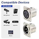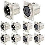 Package Content: 5 x XLR 3-Pin Male Socket Audio Adapter Connector, 5 x XLR 3-Pin Female Socket Audio Adapter Connector. High Quality: Super wear-resistant anti-oxidation and corrosion-resistant XLR chassis can effectively reduce data loss and ensure increased signal sensitivity. Good contact, strong and durable, long service life. Strong Transmission Performance: True hi-fi design with strong conductivity ensures strong transmission of perfect signal. Nickel plating for maximum signal transmission and durability. Reliable: Our panel mount is a 3 pin XLR socket with an alloy body and silver plated contacts. This panel mount audio connector has solder terminals and is often found in studios or to organize cables for wall mounts. Easy installation and reliable performance. GREAT VALUE PACK OF 10: Comes with 5 XLR 3Pin Male Adapter Sockets and 5 XLR 3Pin Female Adapter Sockets in each pack. Get enough parts to meet your needs and your convenience. It's a more cost-effective and reliable package for anyone who wants to use it.