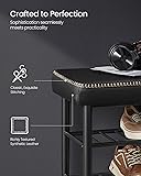 [Style That Speaks] Recognized the Bronze A’ Design Award 2024, this shoe bench from our VASAGLE EKHO Collection blends synthetic leather with refined stitching. A tangible homage to craftsmanship, it helps craft a home that speaks volumes about style [Comfort at Every Sit] Glide your hand over the smooth cover, then sink into the supportive 2.4" thick, 25D high-resilience foam, designed to resist deformation. This shoe bench provides a comfortable seat that endures, standing the test of time [Sturdy and Stable] This entryway bench, built with a robust steel frame and swivel leveling feet, effortlessly supports up to 300 lb. It offers a sturdy, wobble-free seat for you to comfortably prepare for the day or unwind after a long one [Enhanced Storage, Vacuum-Friendly] This cleverly designed bottom shelf stands 3.9" off the ground, providing 3 tiers of shoe storage. Plus, it's high enough for your robo-vac to clean under, helping keep your space neat and clean [Effortless Clean, Easy Assembly] Featuring an easy-to-clean synthetic leather surface and clear, straightforward instructions, along with the assembly tool, this upholstered storage bench ensures that both maintenance and setup are a breeze