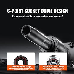 Cr-V Industrial-Grade Alloy Steel: Crafted from premium impact-grade alloy steel, our 1/2 impact socket set with Cr-V industrial-grade alloy steel offers exceptional enhancements in impact resistance and absorption. Through the utilization of vacuum heat treatment, the steel undergoes rapid heating and cooling processes, resulting in a polished and highly durable surface. This makes it well-suited for a wide range of operational environments. High Torque: Distinguished by its hexagonal drive design, which sets it apart from traditional designs lacking rounded corners, this socket tool set significantly reduces pressure exerted on fasteners during impact. As a result, it minimizes wear and effectively prevents bolt rounding and stripping. Easy-to-Read Size Markings: The size markings on these 65pcs impact driver socket set are meticulously laser-etched and rolled, ensuring effortless identification of socket sizes even in low light conditions. Convenient Storage & Transportation: The set is accompanied by a moderate-weight metal toolbox, providing convenient portability. The toolbox facilitates organized storage of the tools after use, eliminating the risk of unnecessary scattering or loss. Abundant Components: This comprehensive set includes an array of components, such as deep and standard sockets 10mm, 11mm, 12mm, 13mm, 14mm, 15mm, 16mm, 17mm, 18mm, 19mm, 20mm, 21mm, 22mm, 23mm, 24mm, 3/8", 7/16", 1/2", 9/16", 5/8", 11/16", 3/4", 13/16", 7/8", 15/16", 1", 1-1/16", 1-1/8", 1-1/4". Other components include extension bars in lengths of 3",5",10", 1/2" 72 teeth ratchet wrench, 1/2" impact universal adapter, 1/2"F x 3/8"M adapter, and 3/8"F to 1/2" M adapter.
