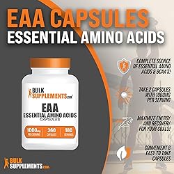 BulkSupplements.com Essential Amino Acids Capsules - EAA Capsules, Essential Amino Acids Supplement, EAAs Amino Acids - EAA Supplements, 2 Capsules per Serving, 180-Day Supply, 360 Capsules