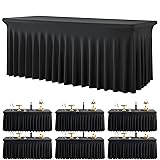 - 6 pack Black Spandex Tablecloths for 6 Foot Rectangle Tables, Wrinkle Free Stretchy Table Clothes with Skirt for Weddings Birthday Party Banquet Baby Shower