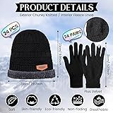 Suhine 48 Pcs Winter Beanies Hat Gloves Bulk Sets Knit Thick Snow Skull Cap Fleece Lined Warm Mittens for Women Men Unisex Adults Homeless Gift Black
