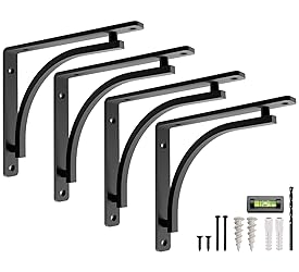 - Elevate your home or workspace with the Balin Designs Heavy Duty Shelf Brackets Set of 4, designed for versatility and strength; these black metal L brackets for shelves come in sizes of 6, 8, 10, and 12 inches, making them perfect for any project, from garage organization to stylish kitchen displays, featuring a curved support for enhanced stability, these heavy duty shelving brackets are ideal for bookshelves, outdoor applications, and more, ensuring your shelves are securely mounted with confidence, whether you need large shelf brackets or specific 12 inch shelf brackets heavy duty, this set provides the perfect solution with metal brackets for shelves that combine durability and aesthetic appeal, making them a must-have for any DIY enthusiast or professional looking for reliable wall shelving brackets.