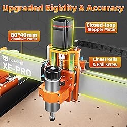 NEMA23 Closed-loop Stepper Motors: Equipped with four closed-loop stepper motors, this enables the FoxAlien XE-PRO can run faster and smoother in a lower noise level. The max moving speed is 5000mm/min, which is 2.5 times faster than the open-loop stepper motors. Ball Screw Driven System: The XE-PRO uses 1204 ball screws on the XYZ axes for precise cutting and carving. It also uses the dual linear rails on Z axis to improve the rigidity of the machine. Unique Upgradable Design: Exclusive and innovative design for linear rails upgrade on XY axis. The XE-PRO can be turned into an industrial grade home use machine by changing X and Y axis to linear rails. More Possibilities for Spindles: The XE-PRO comes with 3 spindle clamps: 52mm, 65mm and 69mm. This allows user to use different spindles or trim routers for different projects. It is also compatible with FoxAlien engraving power modules. Easy Installation: Main parts are pre-assembled, it just takes 25-30 minutes to assemble the machine, then you can explore the journey of CNC machining. It is Grbl-based. Lots of tutorials can be found online and it is user-friendly to CNC beginners.