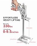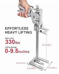 HAND JACK SPECIFICATION: Two hand lifting jack tool are used at the same time, with a load capacity of up to 330 lbs. Height:15.6 inches, lifting range: 0-9.5 inch. Weight: 2.38 lb/pc LABOR SAVING DESIGN: This versatile furniture jack uses mechanical leverage to lift heavy objects with minimal effort. Press the lever handle to raise items to the desired height. Lightly press the pressure plate to lower the height quickly. To ensure maximum stability, we recommend using two lifters simultaneously when handling heavy objects UNIQUE FEATURE: Labor saving arm jack can be used as a beam upper device to clamp beams, and it can be used as a woodworking clamp to clamp multiple boards together; when the object is unstable and shrinks inward, it can be used as a fixed expander THICKENED SOLID BASE: The lifting jack is made of stainless steel and aluminum, Which is strong and durable. 3.9X3.9X0.2 inch thickened double clip solid steel bottom plate, stable center of gravity, The compression spring is made of high-toughness silico-manganese steel, which has sufficient durability and elasticity UPGRADED LIFTING HEIGHT: This Jack board lifter lifting height up to 9.5 inches, more higher than normal tools, free height adjustment. There is enough space for installation and adjustment work MULTIPURPOSE LEVER ARM LIFTER: The arm hand tool jack is ideal for lifting, pressing, and precise fastening. It is particularly useful for moving heavy or awkwardly-shaped objects that are difficult to lift by hand. Common uses include lifting and positioning heavy furniture, door and window installation, woodworking, construction, and drywall installation etc PACKAGE CONTAINS: The set comes with two hand jacks, a pair of work gloves, a polyethylene foam-lined protective box, and an instruction manual