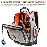 Tool Bag Backpack, 75 Pockets & Loops Heavy Duty Tools Organizer Bags/HVAC Tool Carrier for Eelectrician/Construction Work with Molded Base and Combination Lock, Large, Grey