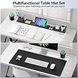 6 PCS Creative Desk Organizer Set - This multifunctional magnetic desktop organizer features modular storage, so you can customize the position of the fixed pen holders, card and cup holders, and tablet holders according to your own habits. It helps you easily organize and store a variety of office supplies for your office, home and school. Large Desk Pad - KDD 31.5 x 14 inch large mouse pad offers plenty of space for a laptop, mouse and keyboard. The surface of the desktop mat is made of finely woven, which is smooth and comfortable. Most importantly, the non-slip rubberized base keeps the mat firmly in place and protects your desk from scratches. Perfect for offices and homes. Powerful Compatibility - Desktop accessories with foldable tablet stand and 2-in-1 card case & cup holder, also comes with organizer for all desktop items - sticky note, pens, scissors, glasses, tablets, data cables, business cards and cups. Keep it organized, easily find anything you need. High Quality Material - The desktop organizer is made of high quality PU leather material, which is comfortable to touch, waterproof and stain-resistant. PU leather has the advantage of being easy to clean, and the surface can be easily wiped clean with a wet wipe. Modern Fashion - Desktop organizer set can be used individually as a desk pad or as an organizer, one step to beautify your desktop. Stylish design is perfect for any office environment or home office. The simple business style of this desktop accessory set is the perfect gift for family and friends.