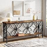 【Industrial-Style Behind Sofa Table】: Combining vintage wood grain surface with black metal accents, this long console table oozes a sense of farmhouse that has passed the baptism of time. Designed with a unique, intricately shaped metal frame on the back, this slim console table blends effortlessly contemporary style with a hint of artistic flair 【Multi-Functional Sofa Table with Storage】: The sofa console table boasts versatility and style to masterfully blend into your home. Whether keep it behind couch as a sofa table to enhance your seating area, or place it in your entryway as a console table for creating a captivating decorative display, it will give you a great experience 【Plenty of Storage Space】: Overall Dimensions: 70.9" L × 11.8" W × 31.9" H, this extra long console table fits nicely in narrow spaces, such as entryways and hallways. The 2-tier shelf features an open design, providing ample space for displaying and storing your decorative pieces and belongings without taking up too much floor space 【Sturdy and Steady】: Crafted from high-grade particle board and quality steel, this skinny console table offers exceptional stability and longevity, each shelf can withstand up to 198 pounds; the adjustable foot pads are designed to adapt to uneven floors and protect your floors from scratches 【Easy to Assemble】: You will get detailed assembly instructions for this entryway console table. All parts, tools, and instructions needed are included. We offer 18 months quality assurance and lifetime professional customer service. If you have any questions, please feel free to contact us