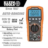 Klein Tools ET270 Auto-Ranging Digital Multi-Tester, AC/DC, Resistance, Continuity, GFCI Receptacle Tester with Test Leads and Receptacle Cord