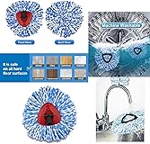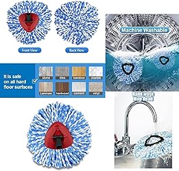 - Funtion:The microfiber spin mop refill uses the power of microfiber to give your floors a deep clean. For dry and wet use. Best for the smooth surface floor, such as wooden floors, ceramic tile, laminate floors, marble floors and other sealed hard floors. Also can wash the car. Specification: Name:6 Packs Spin Mop Head Replacement for 2-Tank System Only Condition: 100% Brand New Material: Microfiber Package Included: 6 x Spin Mop Head Replacement Notes:Please make a measurement of your existing mop head for the diameter and shape before you place your order just in case it's not a perfect fit,it is just for 2-Tank System Only and avoid wash the mop head by washing machine due to the middle support is make of plastic which can make Long service life.