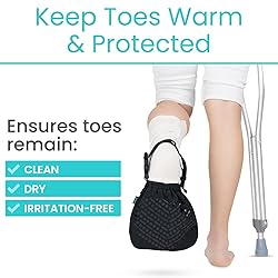 - Experience unrivaled comfort while healing with the Vive Toe Cast Cover. Crafted from a soft, breathable material, it creates a gentle and soothing protective shield for your toes while wearing a cast. This versatile cover works seamlessly with various cast types, ensuring your toes stay clean, dry, and free from irritation. Its machine-washable design makes cleaning it a breeze, guaranteeing a fresh and hygienic cover for multiple uses. Trust the Vive Toe Cast Cover for ultimate toe protection and comfort during recovery.