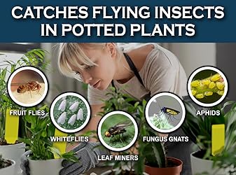 ✅ NATURAL PEST CONTROL: Avoid the use of harmful pesticide sprays by opting for our yellow sticky straps. Made with industrial-grade super adhesive glue, these traps safely capture pesky bugs and insects, effectively controlling infestations and interrupting the breeding cycle in your garden or home. They are the ideal choice for organic gardening and farming, as they are toxin and insecticide-free. ✅ QUALITY DESIGN: While fun shapes may appear charming for gardening accessories, they can potentially disturb your plants or prove challenging to position. Our simple, garden-themed patented stake shape enables easy insertion into any potted plant or hassle-free hanging on trees. Furthermore, our dual-sided glue stake boasts three times the thickness of other standard traps. ✅ SIMPLE AND CONVENIENT USE: Achieving a bug-free garden or home is as easy as two simple steps. Begin by removing the backing paper, then insert the yellow sticky stake into any potted plant or garden. Alternatively, you can hang the trap using the provided twist tie. ✅ LONG LASTING: Our yellow sticky stake bug trap only needs to be replaced when full! Each trap can remain effective for up to 6 months. The industrial-grade glue stays sticky through rain or shine.