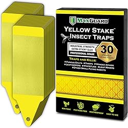 MAXGUARD (30 Pack) Yellow Stake Sticky Insect/Bug Traps - Catch and Kill Fungus Gnats, Whiteflies, Mosquitos, Aphids, Leaf Miners, Flying Insect Catcher Glue Trappers for Indoor or Outdoor