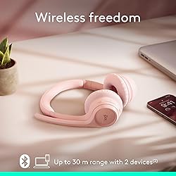 Logitech Zone 300 Wireless Bluetooth Headset with Noise-Canceling Microphone, Compatible with Windows, Mac, Chrome, Linux, iOS, iPadOS, Android – Rose