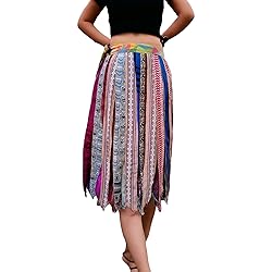 Bohemian Fashion Recycled Silk Sari Ribbon Wrap Around Skirts , Ideal for music festivals, exotic travels, or everyday boho chic style New Style Gypsy Patchwork Wraps Effortlessly pairs with simple tops or layered with bohemian accessories Free size option offers comfort and ease of movement for ultimate wearability Length : 32" Inches Waist : 52" inches Closure : Tie Pattern : Wrap Around Care : Hand Wash Free Size : Flexible Wrap Around Style , Versatile wraparound design ensures a flattering fit for all body types Vibrant multicolour patchwork adds a pop of eclectic charm to any outfit BOTH SIDE HAVE BEUTIFUL WEARABLE PRINT COMFERTABLE WRAP AROUND SKIRTS Crafted from luxurious sari silk remnants, each skirt is a one-of-a-kind piece with a unique story to tell . The given image is referral image only as each and every patchwork piece is unique. These skirts are made from old silk saris of India as per the availability and upcycled to Skirt so each and every piece is unique and one of its kind