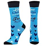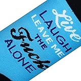 We all know the 3 l's, live, laugh, love; Wrong, it's live, laugh, leave me the fuck alone; Wear these around someone who can't read the room; Be you, Be ODD Size & fit - Women's socks (size 5-10); each pair of casual socks comes with a y-gore heel and elongated spandex cuff to ensure a perfect form around your foot. Top quality cozy socks are made from poly-blend material making our whacky socks breathable and stretchy, always providing a great snug stay-put fit; 360-degree artwork stretches and flexes with you, preserving the color and design details Odd Gift idea; These crazy socks are a step away from the usual gift item and a favorite for everyone; The crew socks have a y-gore heel and elongated stay-in-place stretch cuff for maximum comfort Crazy socks difference - our fun socks are unique works of art; We make it our business to dress you in the funkiest, stylish, and colorful socks on the planet; Satisfaction Guaranteed
