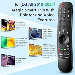 【Applicable TV Series】Replacement magic voice remote control fit for LG 2018-2024 OLED 4K UHD A1,A2,A3,A4,B1,B2,B3,B4,C1,C2,C3,C4,G1,G2,G3,G4 series TVs, UR8000 series TVs. Compatible models MR24GA, MR23GA, MR22GA, MR18BA, MR19BA, MR20GA, MR21GA/GC, MR22GA/GN, MR650 【Compatible Models】75QNED90UQA 55UQ7050ZUD 55UQ7030PUD 65UQ7030PUD OLED97G2PUA OLED77A2PUA 55LX1QPUA 48LX1QPUA OLED83C2PUA OLED77C2PUA OLED55C2PUA OLED65C2PUA OLED48C2PUA OLED42C2PUA OLED77B2PUA OLED65B2PUA OLED55B2PUA OLED83G2PUA OLED77G2PUA OLED65G2PUA OLED55G2PUA OLED88Z2PUA OLED77Z2PUA OLED55A2PUA OLED65A2PUA OLED55A2AUA OLED65A2AUA OLED77A2AUA OLED83C2AUA OLED77C2AUA OLED65C2AUA OLED55C2AUA OLED48C2AUA OLED42C2AUA 75QNED80UQA 65QNED80UQA 55QNED80UQA 50QNED80UQA 50QNED80AQA 55QNED80AQA 65QNED80AQA 75QNED80AQA 86QNED80AQA 86QNED85AQA 75QNED85AQA 65QNED85AQA 55QNED85AQA 55QNED85UQA 65QNED85UQA 75QNED85UQA 86QNED85UQA 86QNED80UQA 86NANO75UQA 75NANO75UQA 70NANO75UQA 65NANO75UQA 55NANO75UQA 50NANO75UQA 43NANO75UQA 50NANO80AQA 65NANO80AQA 75NANO80AQA 55NANO80AQA 75UQ9000PUD 70UQ9000PUD 65UQ9000PUD 55UQ9000PUD 50UQ9000PUD 43UQ9000PUD 70UQ8000AUB 65UQ8000AUB 55UQ8000AUB 50UQ8000AUB 43UQ8000AUB 75UQ8000AUB 86UQ8000AUB OLED77B2AUA OLED65B2AUA OLED55B2AUA etc. 【Key Features】The remote control has voice function, which makes it more convenient for you to use.6 shortcut buttons for direct access to your favorite streaming channels-Netflix/P-Video/Disney+/LG Channels/Sling/Alexa. 【Easy to Use】The remote control of lg smart TV remote control does not require any settings or pairing, and can be used directly by installing 2 * AA batteries (not included).