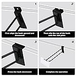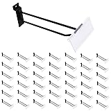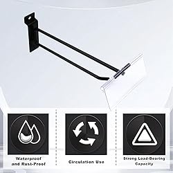 Sufficient Quantity: you will get 50 pieces of black slatwall hooks and 50 matching label holders this bulk set allows you to organize an entire retail display or garage wall without the need for frequent reorders Ideal Size Design: each slatwall hook is 8 inches long perfect for hanging a wide range of items the included plastic price tag holders measure 1.6 x 4 inches offering ample space for your labels and prices to ensure clear visibility Durable Steel Construction: our display hooks are crafted from sturdy 1/4 inch steel wire with a resilient black coating this robust material prevents bending and resists rust keeping your hooks looking new and functioning properly through daily use Effortless Setup simply: slide your custom price tag into the clear label holder and hang your products on the bottom hook the straightforward design makes rearranging your display quick and easy saving you valuable time during setup Versatile Organization Solution: these slatwall hooks are essential for retail stores garages workshops and homes use them to neatly display tools hardware accessories keychains and countless other items transforming cluttered areas into organized spaces