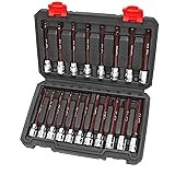 🚗【STURDY AND DURABLE】: LLNEDL extra long Allen socket set consists of a heat-treated, high-hardness S2 alloy steel head and a heavy-duty CRV socket. It is coated with red anti-rust glaze outside on the bits, which is stronger and rust-proof for long-term use. 🚗【PACKAGE INCLUDES】: LLNEDL Allen socket set 3/8 drive include: 11x Metric Allen sockets: 3, 4, 4.5, 5, 5.5, 6, 7, 8, 9, 10, 12mm; 8x SAE Allen sockets: 1/8, 5/32, 3/16, 7/32, 1/4, 9/32, 5/16, 3/8"; 1x Storage Case (8.8 x 5.7 x 1.6") 🚗【CONVENIENT TO USE】: The long Allen head socket set allows you to easily access tight, hard-to-reach areas, and the dimensions of each socket are long-lastingly marked for clarity of opinion, which effectively improves work efficiency. 🚗【IDEAL GIFT CHOICE】: LLNEDL hex socket set comes with a high-quality storage case, good value for money, perfect gift for your friends and family. 🚗【LIFETIME WARRANTY】: LLNEDL toolset meets/exceeds industry standards, ensuring reliable use for years. If you have any questions, please contact us. We'll respond with a satisfactory solution.
