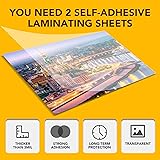 Self Adhesive Laminating Sheets: The package comes with a total of 25 sheets of 9 x 12In self-laminating pages and a squeegee.Quickly and easily laminate important documents without a laminating machine. Laminate anything you desire in a snap Effective Protection: Our laminating sheets are waterproof and have a high-gloss, transparent finish that can ensure your laminated items stand resilient, maintaining their original charm and integrity Child-Safe: These laminating sheets eliminate the typical hazards associated with heat-based lamination.Acid free and safe self-adhesive laminating sheets ensure both children and beginners can safely protect their treasures without risks Easy to Use: Using the convenient grid to align and self-laminating sheets, cutting it easily, trim as necessary. Then simply peel off the protective film, apply the adhesive side to the surface you wish to laminate Wide Application: Laminating sheets are good ideal for both home and office scenarios, or even outdoor promotional needs, great for protecting and preserving documents, photos, menus, recipe cards, certificates, name tags, artwork and more