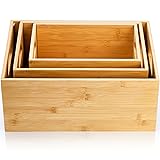 DEAYOU 3 Pack Bamboo Storage Bin, Bamboo Storage Box Crate, Natural Nesting Organizer, Stackable Cubby Basket Container Holder with Handle for Display, Book, Toy, Snack, Decor, Modular Open, 3 Sizes