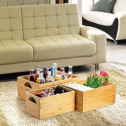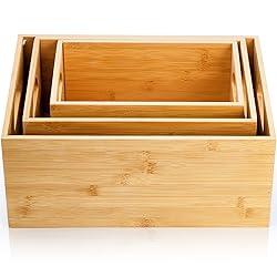 Our crate storage box is made of premium natural strong bamboo with beautiful color and clear texture, odor-free and saft to use. The smooth surface is covered with a waterproof coating for long lasting using These bamboo cubby storage bins feature with built in handles on two sides, which are designed in chic half moon shape, smooth and unique, ease to carry and convenient to use. 3 different sizes as picture shows to meet your various using needs and store a variety of stuff. Also can be nested and stacked for easy storage and space-saving DEAYOU bamboo storage boxes with handles are not only perfect to display and store books, toys, clothing, bedding, handbags, socks, toiletries, towels, but also great to organize your snacks, food, seasoning packets, juice boxes, baking utensils, gadgets, tape, scissors, palettes, arts and crafting supplies Our natural nesting organizers cubes are ideal for bathroom, kitchen, cabinet, pantry, shelves, closet, countertop, bedroom, vanity, craft room, laundry room, garage, home, office, apartment. Just use it at anyplace needed to eliminate the clutter and add stylish organization These bamboo stackable cubby basket container holders feature with convenient open top design, modular structure and classic shape, which is easy to access the stuff inside and makes it the elegant decor to any space. Also deep enough to store more items. No need to install. They are pre-assembled for saving your time and energy