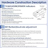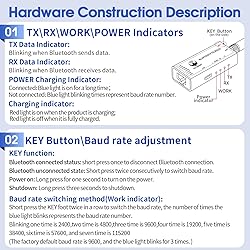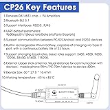【RS232 device to wireless】DX-CP26 can convert your RS232 & RJ45 interface device to wireless Bluetooth communication, and can support wireless communication between PCIOSAndroid. It can be used in RS232 interface device debugging, parameter setting, information query and other application scenarios. (Note: You need to purchase a computer package to communicate with a PC) 【Built-in Bluetooth 5.1 BLE module】Adopts Renesas DA14531 chip + PA Amplifiers, with a transmission power of up to 13.5dBm and a stable communication distance. External rubber stick antenna, Visual distance for communication with devices: mobile phone:90m / PC:70m / device to device:400m. 【Built-in rechargeable lithium battery】The DX-CP26 has a built-in rechargeable lithium battery and does not require external power supply. It can be charged through the TYPE-C port and the battery life can reach up to 24 hours. 【Support baud rate switching】DX-CP26 supports button adjustment of baud rate, supported baud rates: 2400, 4800, 9600, 19200, 38400, 57600, 115200, default 9600bps/8/n/1 (baud rate/data bit/no parity/stop bit). Short press the button twice to switch the baud rate once, the number of blue light flashes represents the baud rate number, one flash for 2400, two times/4800, three times/9600, four times/16200, five times/38400, six times/57600, seven times/115200 【Rich information】We provide a rich information package, including: product manuals, tutorial videos, development and testing tools, etc.Additionally, click the Product Guide and Documentation links below to access user guides, complete product information, and product tutorials. 【Technical Support】We are a manufacturer that supports OEM and ODM services. Please trust our capabilities and technology. If you encounter any problems, please give us a chance before commenting. We will do our best to solve the problem for you. If you encounter any problems, please contact us through User Guide → Product Information → Service Support.