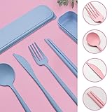 - Features: The travel cutlery set with case are made of natural straw PP material, lightweight, durable, portable and reusable. The set includes knife, fork, chopsticks and spoon, lightweight and solid, can meet all your daily life needs. Each cutlery set comes with a box, easy to clean and not easy to lose. These cutlery sets are ideal for work, travel, camping and gift giving. Specifications: Material: natural straw PP material Color: as picture Package includes: 4 Sets X utensils set Notes: Manual measurement, please allow slight errors on size. The color may exist a slight difference due to different screen displays.
