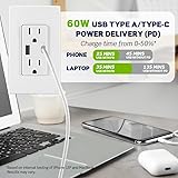 POWERFUL – Capable of fast powerful charging of new PD-enabled devices while still providing charging capability for existing Type A devices The FUTURE of CHARGING – Delivers faster charging and is the standard port on MacBooks, Chromebooks, iPhones, iPads, Samsung Galaxy devices, and more. Perfect for iPhone 17 fast charging, which requires at least 40W. POWER DELIVERY - Detects the connected device to deliver the right amount of power to charge that device as fast as possible. (Note: Not all devices are Power Delivery compatible. Check your device’s owner’s manual.) CONVENIENT – No more searching for charging adapters. Upgrade so you can charge electronics leaving the outlets free for additional power needs FAST CHARGING – Smart chip ensures each device gets the power level it needs to charge fast and efficiently ENHANCED SAFETY – Overcurrent protection helps protect electronic devices from over charging/heating and tamper-resistant outlets prevent unwanted objects from being inserted into the outlets INSTALLATION - Requires an extra deep wallbox for installation Wallplate sold separately