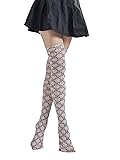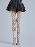 - Sahabowi Gauze Socks B Flower Grid Print For Women, Mesh Thigh Highs Stockings, Holdups Elastic Stretch Thin( HS2023102801tan, 1pair)