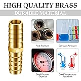 Yaocom 12 Pcs Brass Hose Barb Fitting Splicer Mender Joiner Barbed Hose Fittings with 18pcs Stainless Steel Pipe Clamp for Air/oil/water/fuel, 3/16 1/4 5/16 3/8 1/2 5/8 Inch(Classic,Brassy)