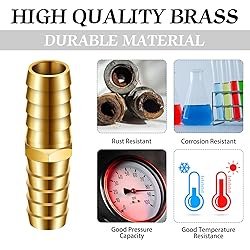 Ample Quantity: this package includes 12 barb splicer mender hose fittings and 18 stainless steel hose clamps, ensuring you have plenty of spare parts for your hose repair and maintenance tasks; Our collection features 6 different sizes, 3/16", 1/4", 5/16", 3/8", 1/2", 5/8", 2 pieces for each size; This varied size range provides that, no matter your need or hose specifications, there will be a fitting in our set to match your requirements to ensure an ideal fit every time Trustworthy Material: our brass barb union fittings are made of quality brass material, while the hose clamps are constructed from resilient stainless steel; The reliable materials ensure the durability and longevity of our fittings and clamps, offering you a reliable tool that's built to last Good Performance: with an operating temperature range of -65 to +250 degrees Fahrenheit and a working pressure of 150PSI, our air hose repair kit is designed with performance in mind; These specifications ensure our fittings and mechanisms can handle even the toughest conditions with exceptional temperature and pressure resistance Firm Connection: our barbed hose fittings, along with the included stainless steel hose clamps, create a secure, leak proof connection every time; The robust design and the firm grip of our clamps ensure a no worry connection that withstands the test of time Wide Range of Applications: these garden hose splice kits are suitable for pipe repair; Various hoses can be attached to these hose barb fittings; They are applied to assist in the transportation of natural gas, oil, air, fuel and water to meet your various needs