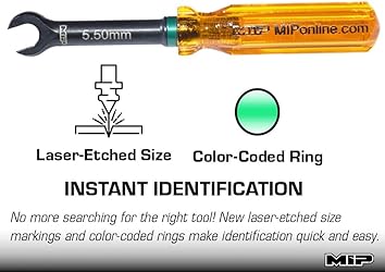 - Upgrade Your RC Toolkit with MIP Turnbuckle Wrenches Take your RC maintenance and repairs to the next level with MIP Turnbuckle Wrenches—designed for precision, durability, and ultimate performance. Whether you're a seasoned racer or a dedicated hobbyist, these high-quality wrenches provide the control and versatility needed to tackle all your RC adjustments with confidence. Engineered for Strength and Precision Crafted from premium steel, MIP Turnbuckle Wrenches are built to withstand the toughest tasks while offering unmatched strength and longevity. Proudly manufactured and assembled in the USA, each tool is designed to the highest standards, with tight tolerances (within +/- .001" or ~0.03mm) for a perfect fit every time. You can trust these tools to deliver consistent, reliable performance on even the most demanding jobs. Leverage and Comfort for Effortless Adjustments With a large shank design for maximum leverage, MIP Turnbuckle Wrenches make tightening and loosening turnbuckles a breeze. The ergonomic, angled tool head enhances comfort, reducing hand fatigue during extended maintenance sessions and allowing for greater torque application without straining your wrist. Whether you're fine-tuning suspension or making quick on-the-fly adjustments, these wrenches give you the leverage you need to get the job done fast and efficiently. Versatile and Compact Designed with a slim profile, MIP Turnbuckle Wrenches allow easy access to tight, hard-to-reach spaces where traditional tools can't fit. These wrenches are perfect for turnbuckles but also serve as a versatile tool for tightening and loosening nuts of various sizes, making them an essential addition to your RC toolkit. Whatever brand of RC vehicle you're working on, these wrenches will quickly become your go-to solution for precise adjustments. Built for Ease of Use MIP Turnbuckle Wrenches feature laser-engraved size markings and color-coded size rings for quick identification, so you can grab the right tool in seconds and get back to the track. The signature amber handle isn't just visually distinctive; it's ergonomically designed to provide a comfortable, non-slip grip, helping you work efficiently during both routine maintenance and urgent repairs. Crafted for Champions, Trusted by Enthusiasts MIP tools are trusted by world champions and hobbyists alike for their race-proven reliability and exceptional durability. With over 20 years of experience in tool production, MIP has established itself as the go-to brand for RC enthusiasts who demand the best. When you choose MIP Turnbuckle Wrenches, you're investing in tools that deliver precision, performance, and longevity. The MIP Difference Superior Craftsmanship: Proudly made in the USA, with each tool hand-assembled for top-tier quality control. Unmatched Precision: Tolerances within +/- .001" (~0.03mm) for a flawless fit and reliable performance. Ergonomic Design: Comfortable, angled tool heads and signature amber handles provide an efficient, non-slip grip. Versatile Use: Perfect for turnbuckles, nuts, and other RC maintenance tasks across various vehicle brands. Race-Proven Performance: Trusted by champions and built to withstand the toughest RC conditions. Elevate your RC maintenance with MIP Turnbuckle Wrenches—tools engineered for precision, designed for comfort, and built to last. Order yours today and experience the MIP difference! #MIPDifference – Tools designed for the serious RC enthusiast.