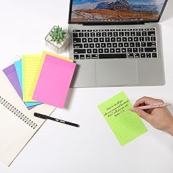 - Mr. Pen lined sticky notes pack includes 6 pads, offering a generous total of 360 sheets to cater to all your note-taking, organizing, and reminder needs.With pre-lined designs on each 4"x 6" note, writing becomes neater and more structured, perfect for concise reminders, to-do lists, or quick annotations.The pads feature a variety of beautiful colors, adding a bright aesthetic to your workspace and making it easy to categorize and color-code your notes.Mr. Pen lined sticky notes have a strong adhesive backing that ensures they stay in place but can also be repositioned without leaving residue, making them a reliable choice for a variety of surfaces.With the ability to stick and re-stick, these notes are perfect for temporarily highlighting pages in books or documents without damage, making them ideal for students, professionals, and anyone needing to organize their thoughts or tasks.