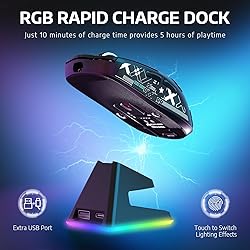 【MANBASNAKE × ATTACK SHARK 49g Ultra-lightweight Mouse】X6 Aerox gaming mouse designed for speed and precision. Through meticulous engineering and innovative liquid nitrogen cooling injection moulding, strength is guaranteed while achieving a thinner and lighter shell. Perfect for all RPG, MMO, FPS, MOBA, Battle Royale and other fast-paced games. 【Tri-mode Connectivity & 6 Pcs Non-Slip Grip Tape】Bluetooth 5.2 + 2.4Ghz Wireless + Wired using. Choose between lag-free 2.4 Ghz mode for blazing fast performance, or the brand new Bluetooth 5.2 for seamless pairing with phones, tablets, and other devices, or play in wired mode with the ultra-flexible charging cable. A 1.6m long paracord cord is included in the package. 【RGB Magnetic Charging Dock & Super Long Battery Life】This mini mouse comes with a wireless magnetic fast-charging base, that provides 5 hours of use on a 10-minute charge. The innovative design of the base is equipped with fingerprint recognition, which can quickly change the RGB lighting effect with just a light touch, combining both functionality and aesthetics. Benefit by the Broadcom microcontroller and superior power solution, this gaming mouse can offers up to 200 hours playtime. 【PixArt PAW3395 Sensor & HUANO Transparent Blue Shell Pink Dot Switches】Equipped with the PixArt’s latest PAW3395 sensor, providing top-notch accuracy and precision for fast-paced, competitive games, capable of 650 IPS speed, 50g acceleration, 26,000 programmable DPI and 1000hz/1ms polling rate. Features over 80 million cycles by using the top-end HUANO switches. Equipped with a TTC scroll wheel encoder which gives precise stepping. 【Upgraded Feet Design & Cutting-edge Comfort】The symmetrical X6 is anti-sweat and easy to grip. Feets are made by 100% pure PTFE. Bigger, roundier and wider feet design offers more stable surface contact, flawless tracking performance and better stopping power. Durability and performance with an extremely comfort ergonomic design, which can significantly reduce the wrist fatigue on your palm, wrist, arm caused by prolonged use. 【Fully Programmable & Wide Applicability】Configure your wireless mouse in our software to program your buttons, DPI/IPS settings, lift-off distance, key Remaps, player, powerful macro settings, etc. The ultra-light mouse is widely applicable to multiple operating systems, such as win7/8/10/11/Mac/Android/Xbox.