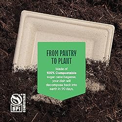 ECO-FRIENDLY CHOICE: These aren't just plates or bowls; they're a revolution made from recycled/repurposed bagasse and bamboo. No trees harmed, just sugar cane leftovers turned into something amazing. We're tree lovers, just like you. They're thick sturdy, strong, and a and a symbol of your commitment to the environment and sustainability. BIODEGRADABLE CHAMPIONS: These BPI-certified 100% compostable all-stars aren't destined for the landfill. At a commercial compost facility, they'll return to nature in 90 days flat. Zero waste, maximum impact! We really love our planet and are committed to keeping it clean! HEAVY-DUTY AND MICROWAVABLE: Don't underestimate these nature warriors. Our plates are four times stronger than standard disposable paper or plastic ones. They're able to resist oil, sogginess, bending, and knife cuts. Plus, they're safe to use in the microwave, and can be used for hot or cold. MEAL-FRIENDLY: Got a saucy spaghetti or a greasy BBQ dinner? Bring it on! Our plates and bowls are ready to handle all types of food with grace. Each plate, tray and bowl, brown or white, is designed to handle the messiest foods and soup without losing their cool. They won't break, wobble, bend or soak. CHEMICAL-FREE GOODNESS: We're all about keeping it clean. We've taken extra care to make our plates PFAS-free, and we do not use any plastic or wax coatings, prioritizing both your family's health and the environment's wellbeing. Using our tableware not only shows your commitment to the environment but also protects your family's health.