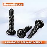 - Product Specification Self drilling screws have a drill bit point. Pan heads are slightly rounded with short vertical sides. Phillips drive is x-shaped for installation with a phillips screw driver. Size: #8 Screw Length: 3/4" Head: Pan Head Point Type: Self Drilling Exterior Finish: Black Finish High Quality Material Stainless Steel 410 Package Included 100 x Pan Head Self Drill Screws #8 x 3/4" Warranty MewuDecor hardware has the highest quality on the market. Buy with confidence. Money back or exchange guarranteed.