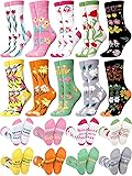 Flower Style Design: our flower socks for women come in flower plants design that not only enhances your fashion appeal but also depicts a sense of novelty, featuring a blend of different floral patterns; The package includes 10 pairs of womens flower socks, giving you the ability to match with your mood or outfit Motivational Words: these novelty socks for women also have motivational words printed on them to inspire women to face challenges bravely, such as [SUPER WOMEN], [WOMEN CAN DO ANYTHING] and so on, with powerful inspirational words, turning them into beacons of inspiration for every woman to tackle life's hurdles with courage and confidence; Our products come in new and old version; The old version has impolite words, but the new version has been replaced and will be sold into new style Proper Size: our plant socks for women are size 9-11, which can fit women's shoes 5-10, suitable for most adult women, easily matched with your clothes, comfy and lightweight, breathable and skin friendly, with plant and flower pattern and different colors to satisfy your needs for dressing and keep your feet cozy Quality Material: the breathability and comfort offered by these ladies casual dress crew socks are due to their quality material composition of nylon and cotton, elastic and soft, machine washable, suitable for all seasons; The nylon provides durability and resilience, ideal for prolonged usage, while the cotton keeps comfort by delivering a nice breathability, suitable for daily collocation, various birthday parties, workout, running, yoga, and other casual occasions Practical and Useful Gift: cute socks for women are thoughtful gifts for Christmas, Valentine's Day, Mother's Day, Womens Day, birthday, Thanksgiving and other special days for your wives, mothers, girlfriends, colleagues, friends, sisters and daughters; Match with athletic shoes, casual shoes, running shoes, hiking shoes, canvas shoes, tennis shoes, and sneakers; Not just practical and comfortable but also carry an inspiring message, making them a beautiful and practical gift choice