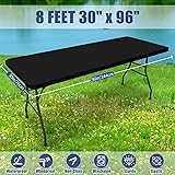 Moosfor Spandex 8 Foot Rectangle Table Cloth, Elastic Fitted Tablecloths for Picnic, Stretch Washable Patio Table Cover for Outdoor, Camping, Banquet and Parties (Black, 30"x96")