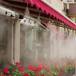 - Features: The water misters for cooling outdoor are made with quality material. It includes antioxidant adapters made from PE and nozzles made of brass, ensuring longevity and effectiveness. The durability of these materials ensures a reliable and long lasting performance. The design and suitable size of the water misting system make it a nice solution for diverse outdoor spaces, ensuring efficient cooling and comfort during hot summer days. Specifications: Material: Antioxidant adapters: PE Nozzles: brass Color: as shown in pictures Size: Mist line: about 1/4 inches, and 164 ft in length Antioxidant adapters: about 3/4 inches Package includes: 1 x Mist line 4 x T shaped adapters 4 x Antioxidant adapters 50 x Atomizing connectors 4 x Elbow adapters 100 x Ties 4 x Seals 100 x Buckles 50 x Brass nozzles 6 x End plugs Notes: Manual measurement, please allow slight errors on size. The color may exist a slight difference due to different screen displays. Winding risk may exist, please keep our product away from children.